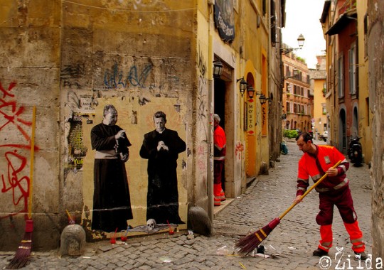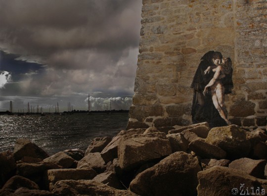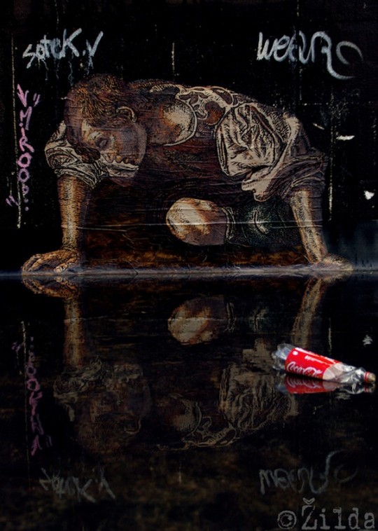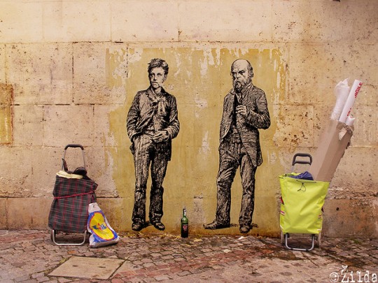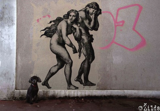 French street artist Zilda incorporates both classical and contemporary imagery into his wheatpastes.